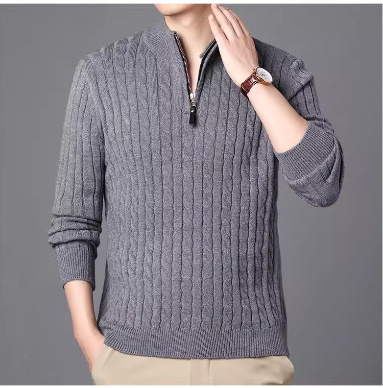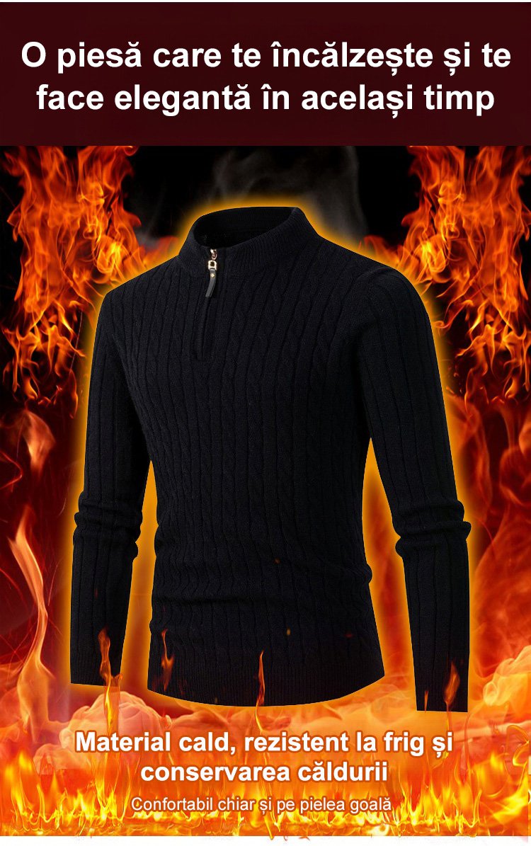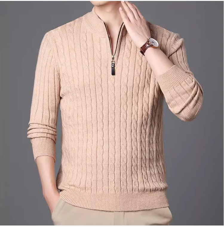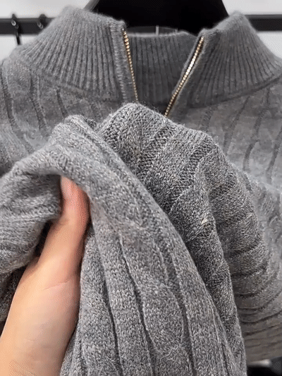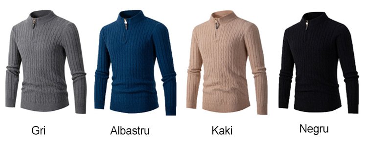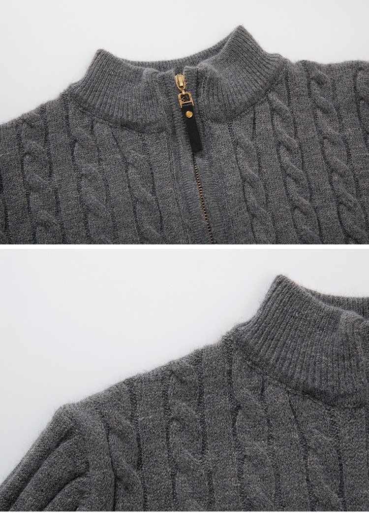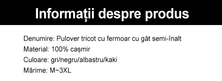Pulover tricotat cu fermoar pe jumătate de gât înalt din cașmir cu fermoar